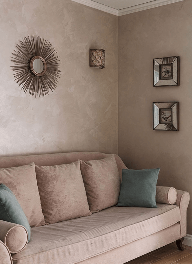Декоративное покрытие эффект Шёлк устойчиво к истиранию, долговечно и удобно в эксплуатации. Главной его особенностью служит лёгкость реставрации. Это может быть как локальное, так и кардинальное изменение поверхности. Возможно, вы решили изменить цвет материала или добавить яркий акцент из фактуры — всё это возможно. Также тонкослойное покрытие является одним из самых доступных по цене.