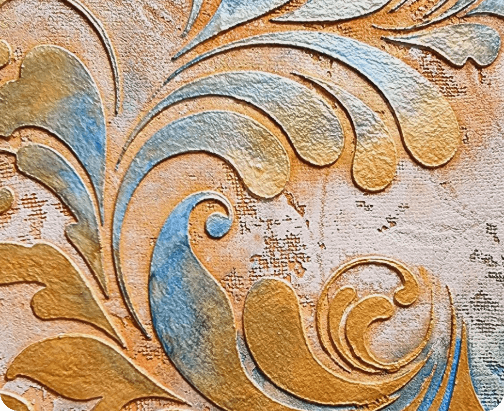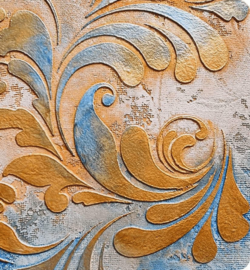 Как только трафарет будет готов, мастер-технолог приступает к изготовлению самого образца с учетом всех пожеланий. Этот процесс может занимать около недели, в зависимости от сложности поставленной задачи. На сложность влияют: форма — количество линий, изгибов; фактура — грубая или более сглаженный вариант образца; цвет — многообразие цветов может потребовать больше внимания и времени на изготовление. После согласования образца, приступаем к изготовлению трафарета в нужном нам объёме (для стен и потолков). В результате вы наслаждаетесь великолепным эффектом долгие годы.