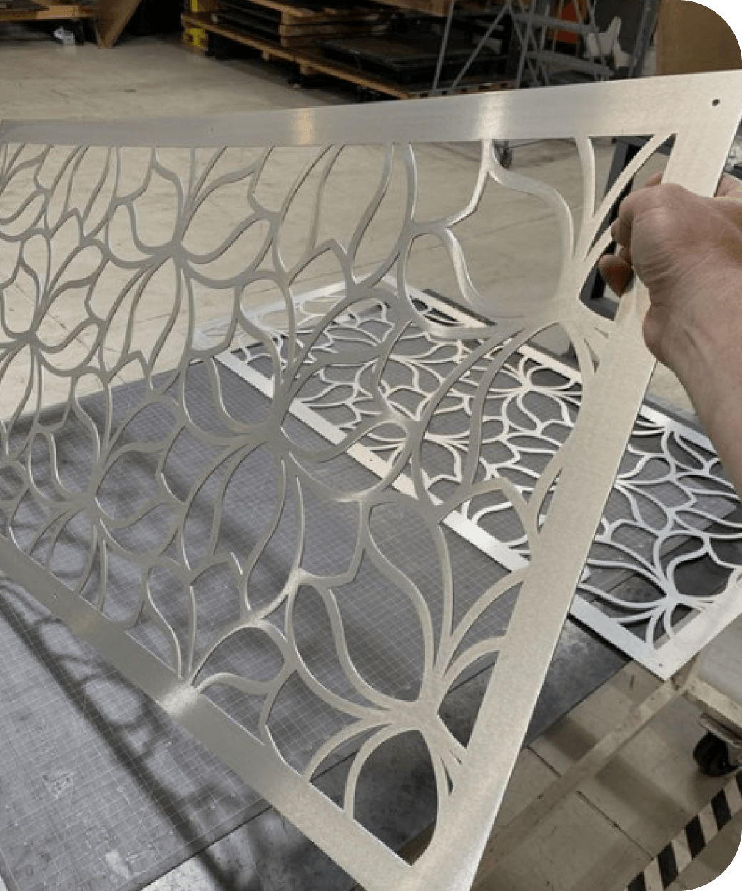 Далее происходит этап изготовления самого трафарета по индивидуальным эскизам в тестовом формате (в небольшом размере). Мы можем использовать типографскую пленку высокого качества, пластик, дерево или даже металл для реализации желаемого эффекта.